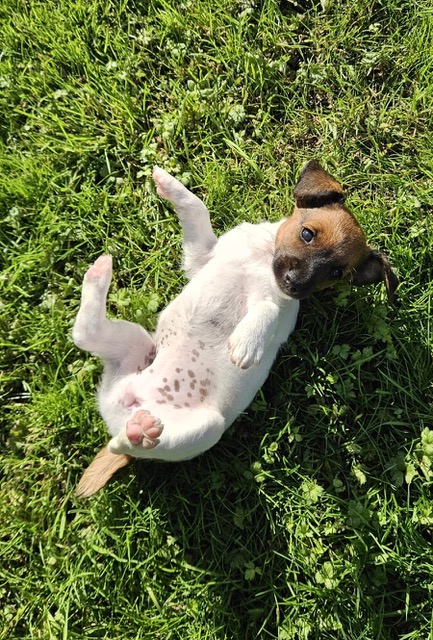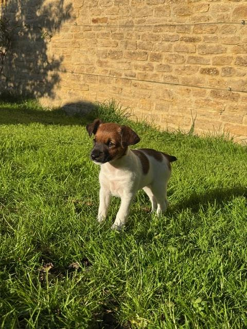 Gorgeous Jack Russel bitch puppy looking for a wonderful family home. She will be 8 weeks old on 1st October and will be wormed, vaccinated and micro chipped plus starter pack of food. She is well on the way to being house trained and is used to other dogs. Beautifully marked and likely to be slightly long haired like both her parents - Henry Baines and Toffee Pitman: more photos/videos available.